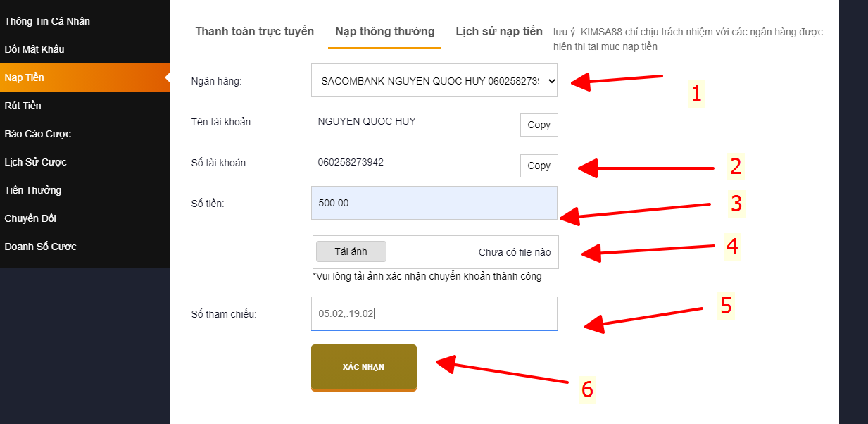 - xong bấm xác nhận như vậy bạn đã chuyển tiền thành công và bắt đầu cá cược