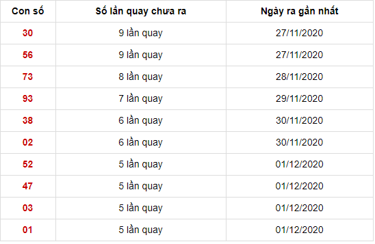 Những cặp số không xuất hiện lâu nhất trong 30 kỳ quay xổ số Miền Nam