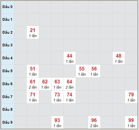 - Cặp số về nhiều nhất: 73 – 63 – 79 – 51 – 59