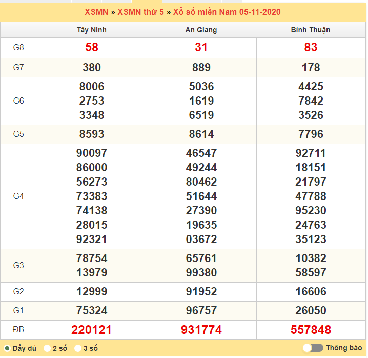 2. Thống kê lô tô miền Nam ngày 12/11/2020 thứ 5: