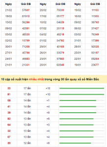 Bạn có thể xem kết quả dự đoán XSMB ngày 23/2/2021 của A TRÚNG RỒI hoặc tham khảo kết quả thống kê giải đặt biệt XSMB và 10 cặp số xuất hiện nhiều nhất, xuất hiện ít nhất bên dưới để tự dự đoán kết quả XSMB hôm nay cho riêng mình.