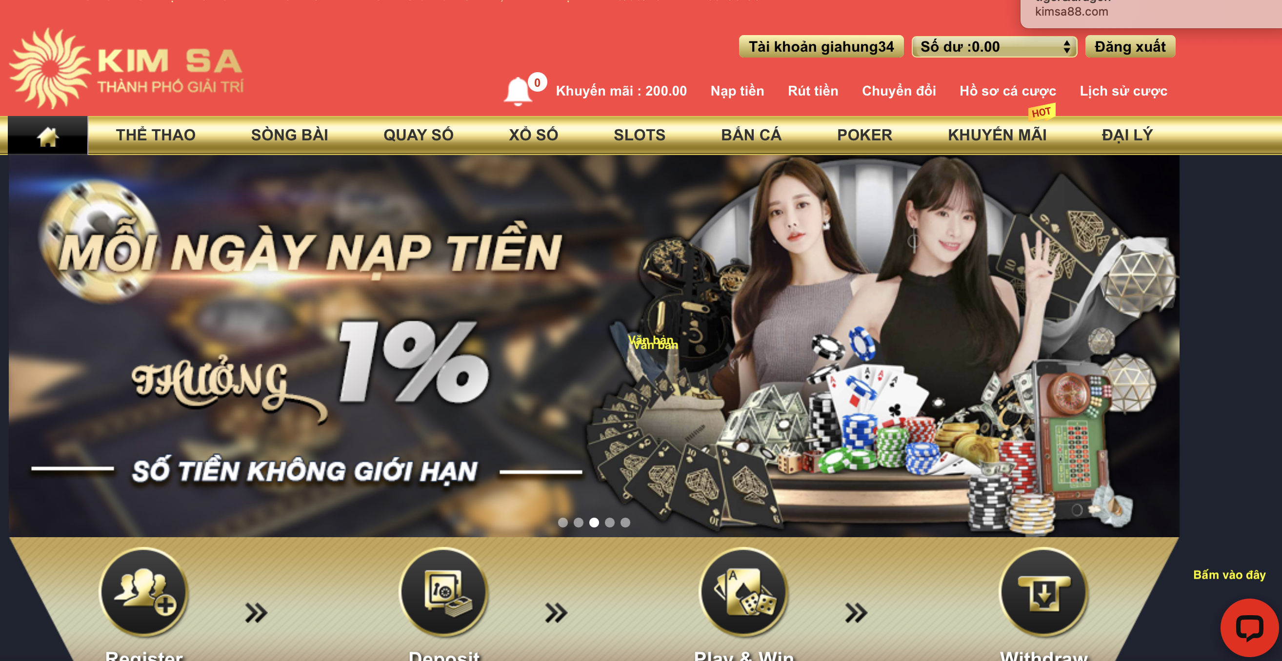 Cần đăng ký tài khoản kimsa88 để có thể thực hiện liên hệ CSKH Kimsa.Sau khi đăng nhập chúng ta bắt đầu